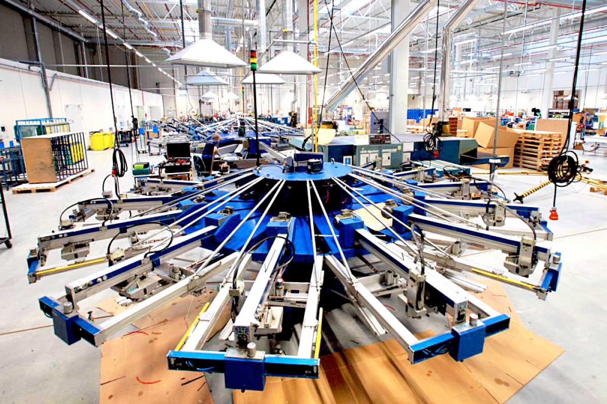 10,000 m2 modern warehouse and production facility. 6 Automatic printing presses (M&R and MHM), 5 manual presses, 9 embroidery machines (Tajima), Kornit & Brother DTG machines and Roland sublima- tion unit. The factory has a daily decoration capacity of 50,000 garments.